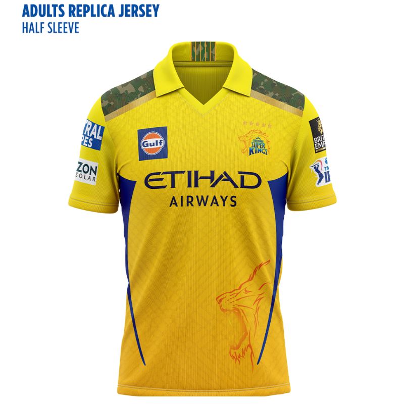 The ’25 CSK Half Sleeve Replica Jersey is a nod to the legacy of MS Dhoni and the spirit of the Super Kings. Featuring his iconic #7, this jersey blends the signature yellow hue with a sleek design and a camouflage patch honouring India’s armed forces. Designed for fans who stand by CSK through every moment, it’s a symbol of pride and dedication. If it’s 7, it’s Thala.